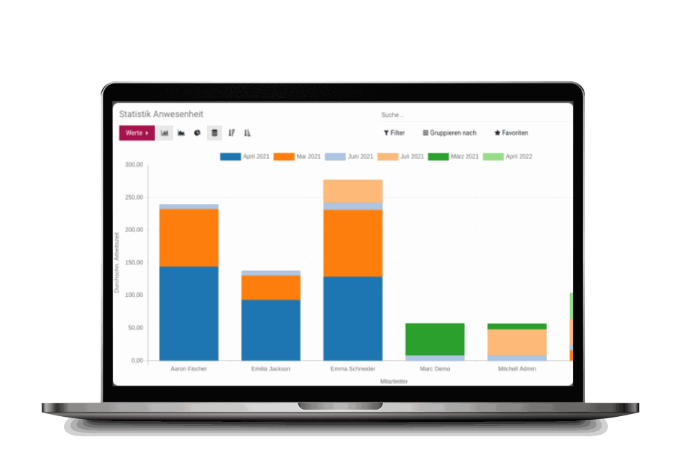 Every attendance entry is logged individually based on the posting principle. Whether you're a manager viewing all employees or a staff member reviewing your own hours—our flexible permission system supports both.