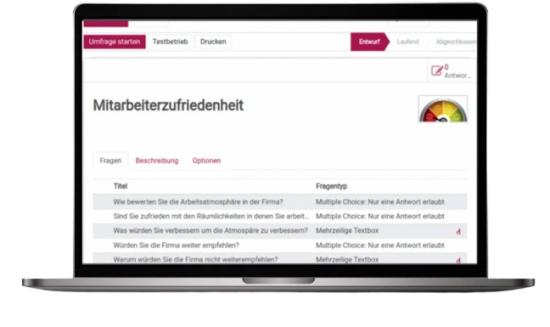If the question “How do you rate the work atmosphere?” is answered with “Unpleasant”, additional follow-up questions are triggered automatically.